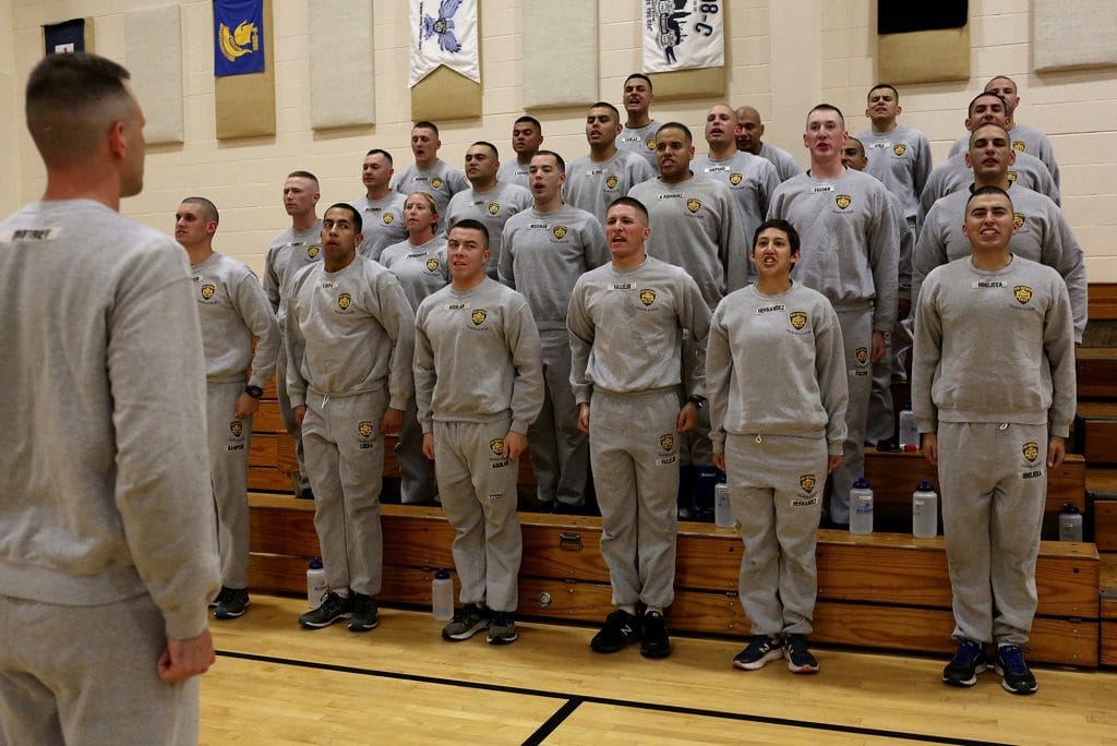 Cadets get in formation during their final physical training test at the San Antonio Police Training Academy on June 16, 2017.