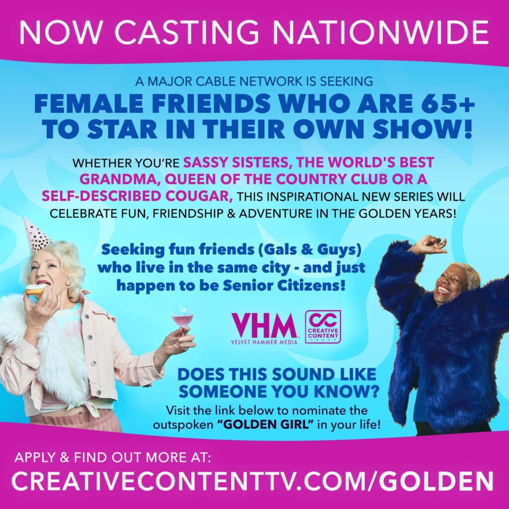 That’s right, there is a nationwide casting call out for seniors, Golden Girls, who are ready to star in an inspirational new television series on a major cable network.