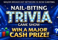 Get on game show – Major Broadcaster holding auditions online. Think you know your trivia? Are you ready to travel internationally to prove it? If so, a new television trivia game show would like to have you apply. NOW CASTING – NEW MAJOR NETWORK TRIVIA GAME SHOW WIN A MAJOR CASH PRIZE Love trivia, competition,… Read More »