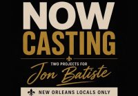 NOW CASTING for Jon Batiste Projects (New Orleans Locals) Jon Batiste is seeking performers in the New Orleans, Louisiana area for two upcoming live events. SEEKING: The Jon Batiste casting call for two projects for Jon Batiste in New Orleans, LA . It seems they are looking for talent who bring presence, personality, and authenticity.… Read More »