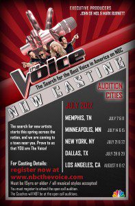The search to find artists for “The Voice” continues this summer across the nation, and we are coming to a town near you. This is your chance to get in front of the show’s producers!