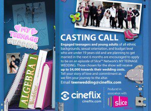 If you know of any teenagers who are planning on getting married in the next 6 months, we have an opportunity for them to to star in an episode of MY TEENAGE WEDDING.