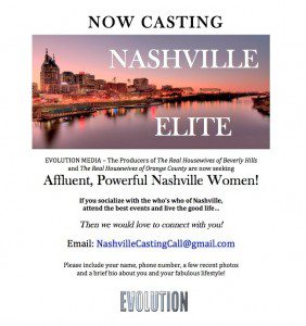 From the Producers of The Real Housewives of Beverly Hills and The Real Housewives of Orange County comes a NEW Nashville based docu-series for a major cable network! If you or someone you know is a successful, powerful WOMAN, single or married, with an outstanding personality, who frequents the Nashville social scene – we would love to hear from them! Entrepreneurs, Power Couples, CEO’s, Wives of Music Execs and Sports Players etc etc – Please encourage anyone you know who considers themselves part of Nashville’s Elite, to apply now. Referrals are certainly welcomed!