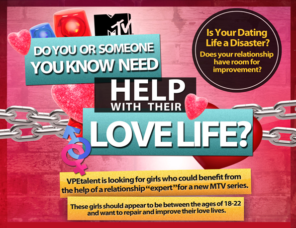 VPEtalent is looking for girls who could benefit from the help of a relationship “expert” for a new MTV series.