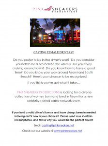 PINK SNEAKERS PRODUCTIONS is looking for a diverse collection of women born and bred in Miami for a new celebrity-hosted cable network show.