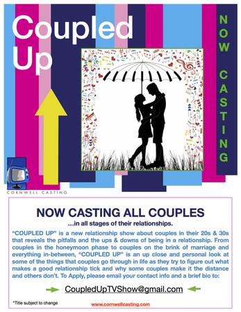 NOW CASTING A NEW DOCU-SERIES / PILOT FOR A MAJOR CABLE NETWORK!! Looking for couples NATIONWIDE in their 20’s & 30’s! “Coupled Up” is a new relationship show that explores different couples who are at various stages in their relationship and what they can learn from one another in order to make their relationship work!
