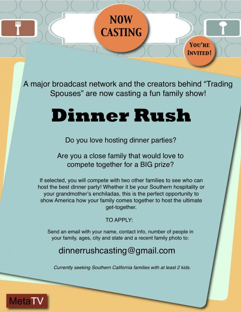 Please submit to: dinnerrushcasting@gmail.com by