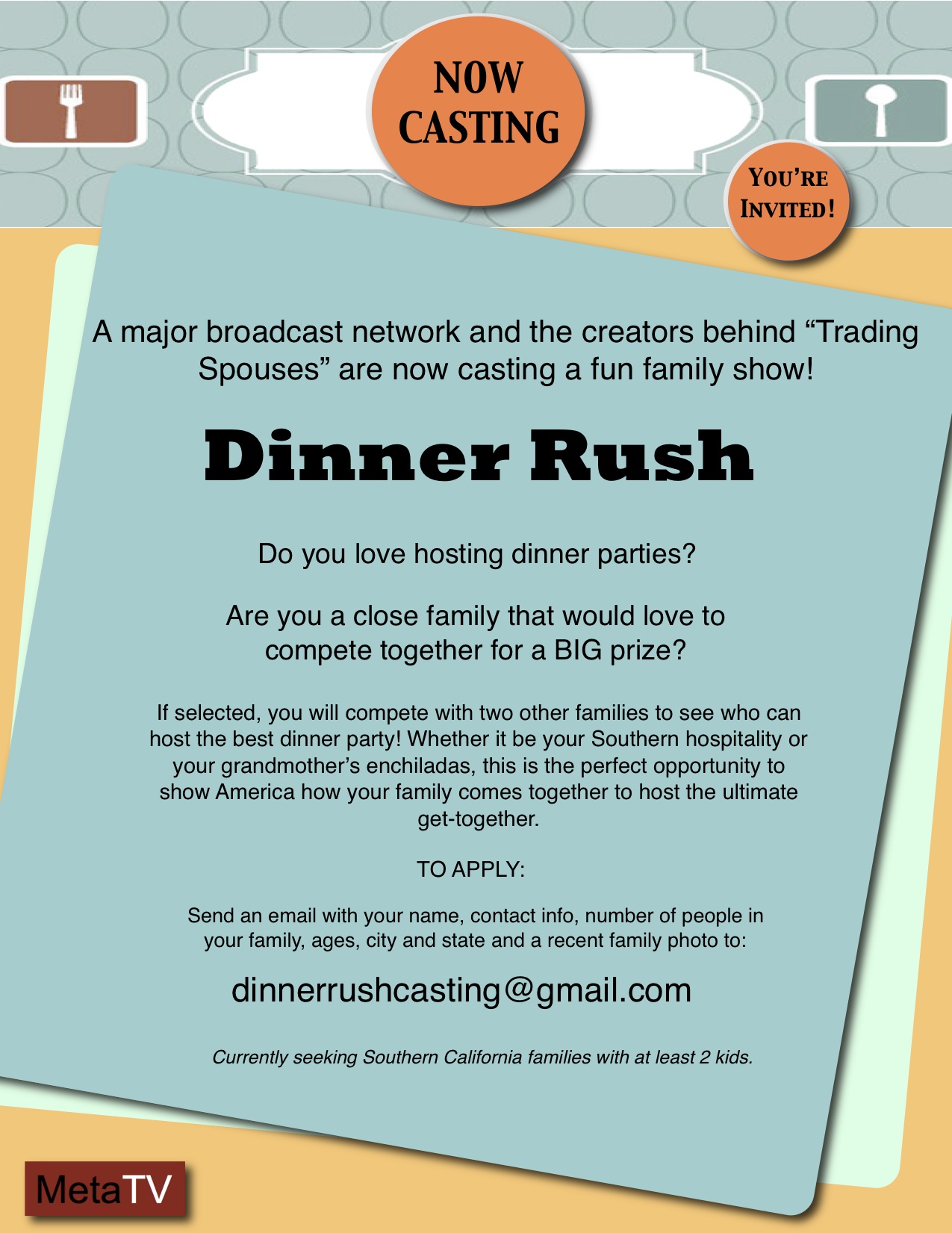 This casting notice was posted by: MetaTV