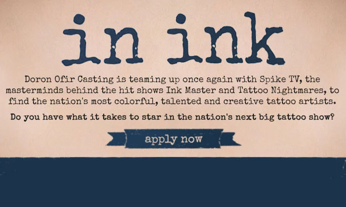 Do you have what it takes to star in the nation’s next big tattoo show? Doron Ofir casting and Spike Tv want to hear from you.