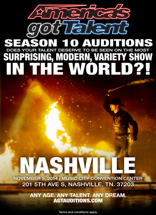 America’s Got Talent (NBC) will be in Nashville on November 5th at the beautiful Music City Convention Center! America’s Got Talent is celebrating our 10th year, and we are glad to announce it will be our biggest, and best season with your help…