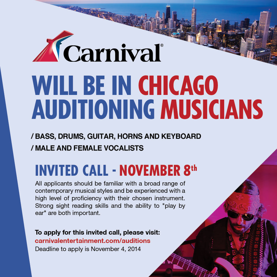 Carnival Cruise Lines Chicago Invited Call: Musicians