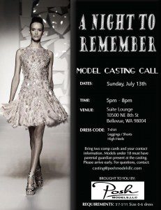 “A NIGHT TO REMEMBER” black tie charity event at Mercedes Benz Seattle will be held mid August. We will be picking the best for this event. All models should come with their portfolios, comp card or 2 photos, and be prepared to walk. Please arrive in solid top, fitted jeans/pants and heels.