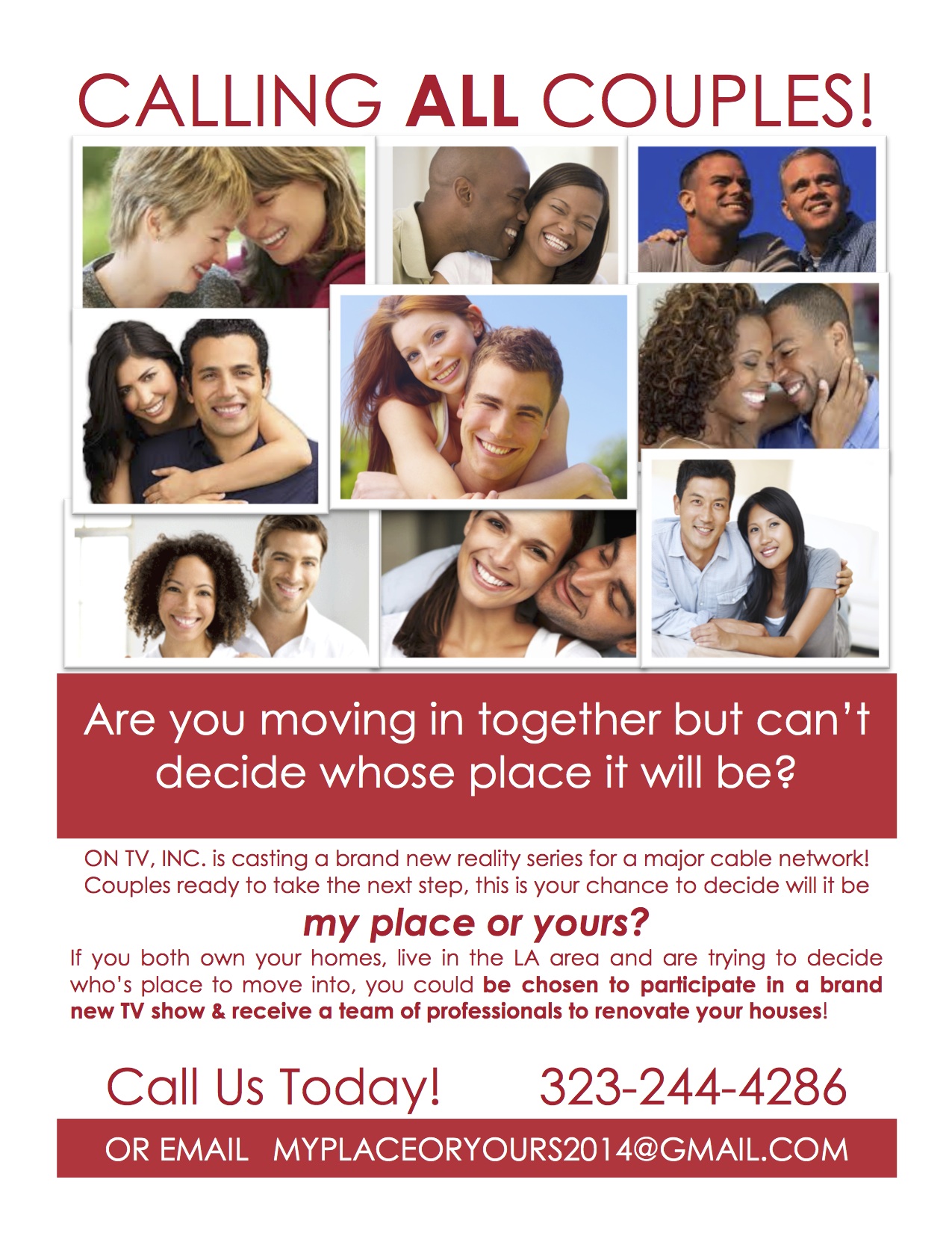 SEEKING COUPLES WHO ARE READY TO MOVE IN TOGETHER TO STAR ON NEW TV SHOW.
