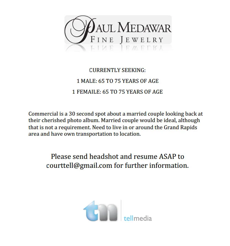 A TV commercial for a jewelry company is about to film in the Grand Rapids area of Michigan.