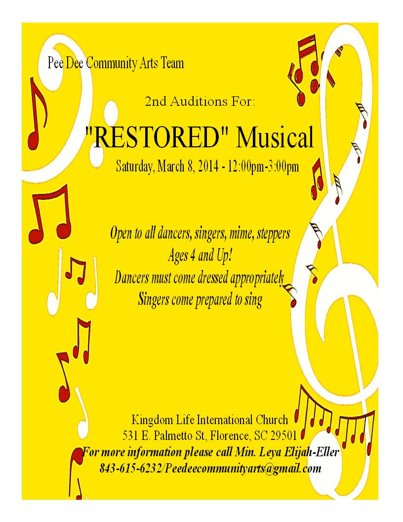 FOR MORE INFORMATION PLEASE CONTACT LEYA ELIJAH-ELLER/ARTISTIC DIRECTOR (843) 615-6232 OR EMAIL PEEDEECOMMUNITYARTS@GMAIL.COM