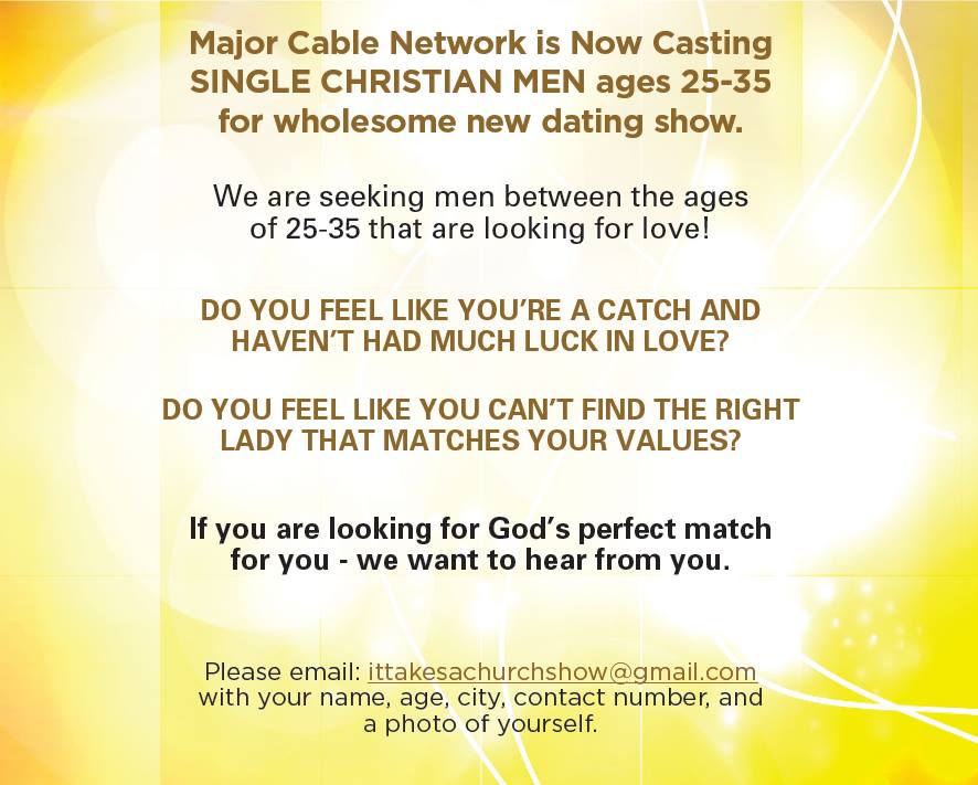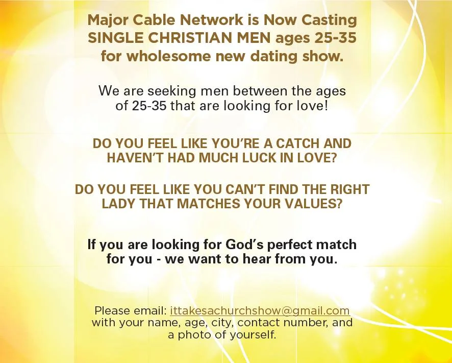 Casting for new dating show! Seeking SINGLE Christian Men ages 25-35 in the greater Charlotte, NC area.