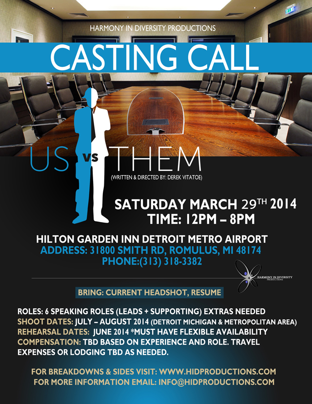 For additional information and breakdown of roles visit our website @ www.hidproductions.com or send email to info@hidproductions.com.
