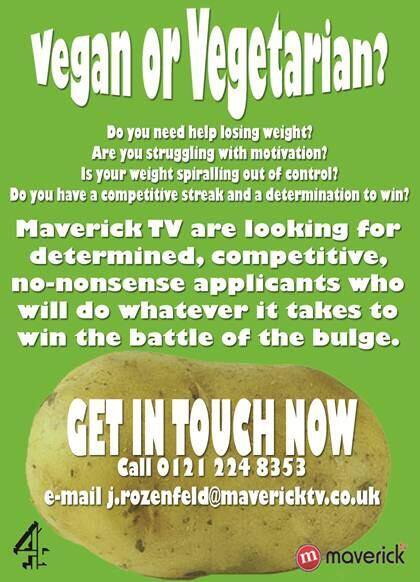 UK based TV production company Maverick TV is now casting vegans and vegetarians who would like to lose some weight.