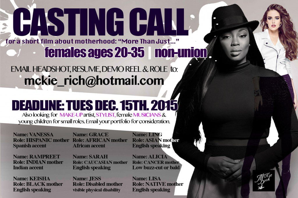 We are looking for a few talented females to act as mothers for an upcoming short film. All types of accents, dialects and races are welcome. Bi- lingual are also welcome.