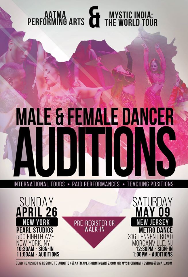 1. Interested dancers should send their head shot and resume to audition@aatmaperformingarts.com OR mysticindiatheshow@gmail.com