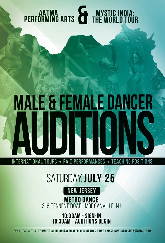The AATMA Performing Arts and Mystic India dance company is seeking both male and female dancers to fill positions in their upcoming world tour.