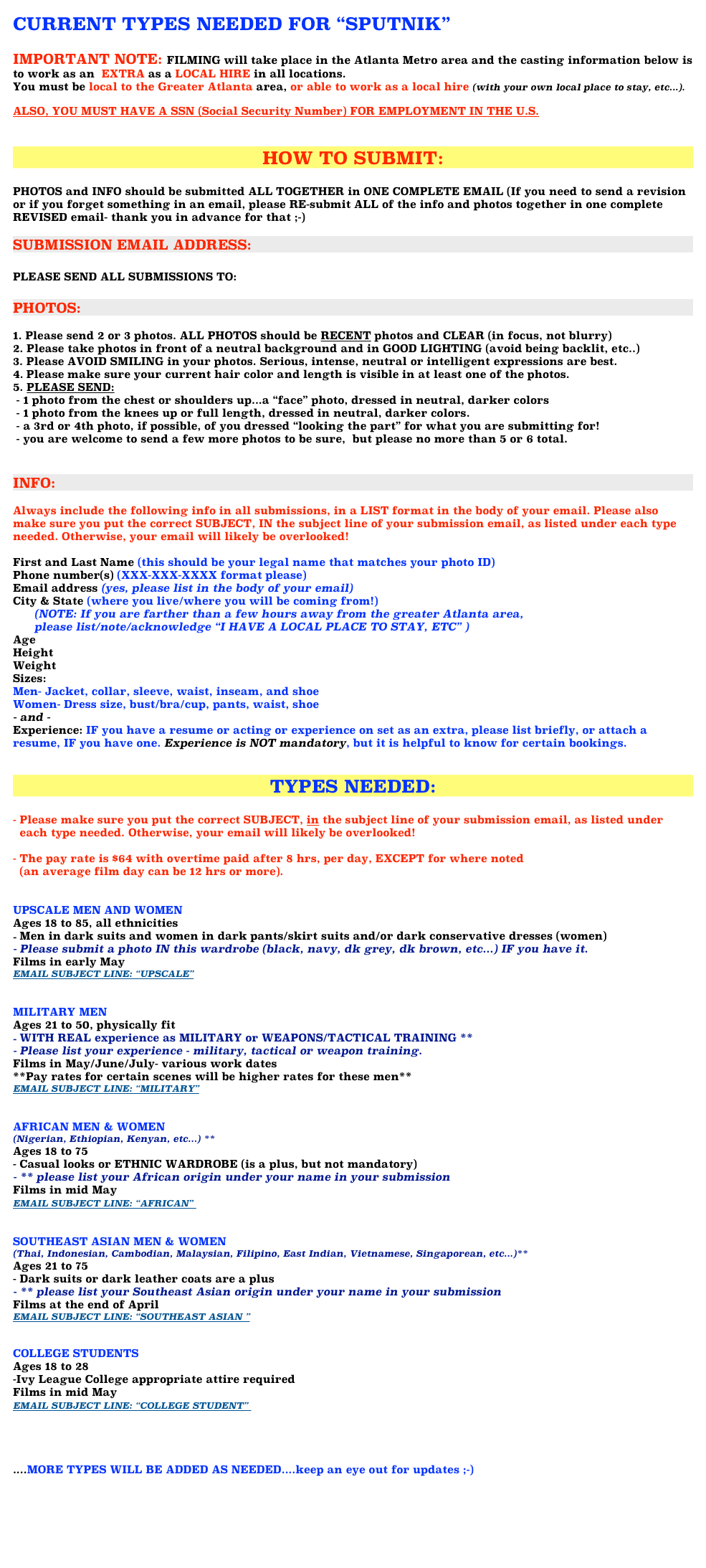 Please submit to: SPUTNIKEXTRAS@GMAIL.COM