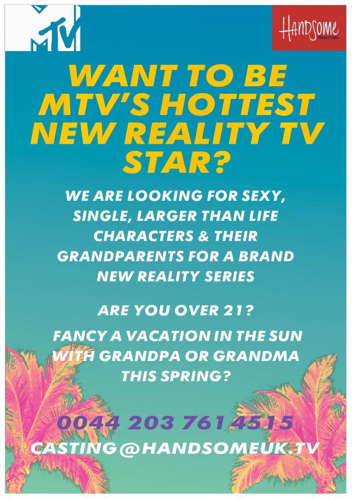 WE ARE LOOKING FOR SEXY, SINGLE, LARGER THAN LIFE CHARACTERS & THEIR GRANDPARENTS FOR A BRAND NEW REALITY SERIES