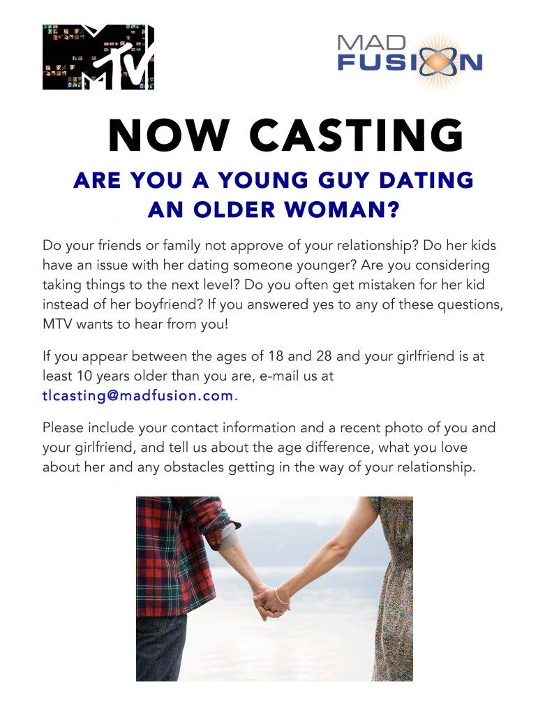 MTV Is looking for older woman/younger guy who are dating or in relationships so cougar and cub couples, we want to hear from you!