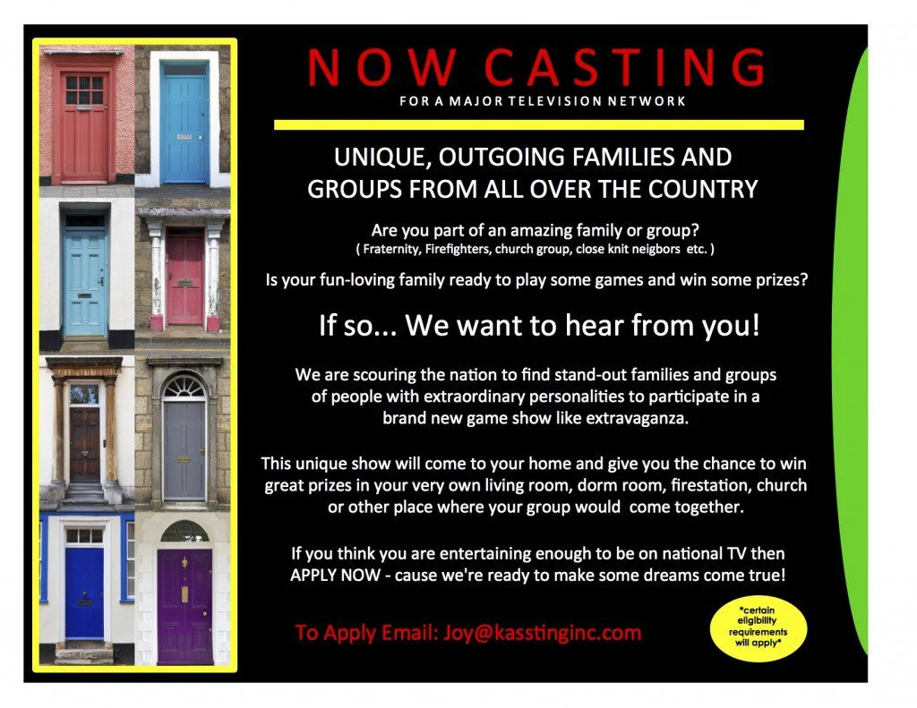 Casting directors for a new family game show want to hear all about your close knit group. The new game show is casting families and groups nationwide. They are seeking people with extraordinary, outgoing personalities to participate.