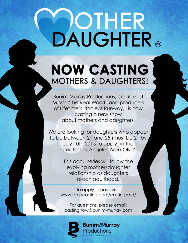 Bunim-Murray Productions, creators of MTV’s “Real World” and producers of Lifetime’s “Project Runway,” is now casting a new show about mothers and daughters.