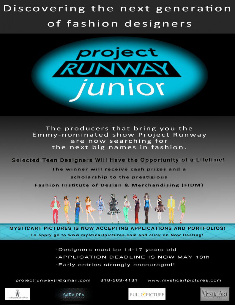 Teen designers cast for the show will get a once in a lifetime opportunity. The winner of the show will not only get national exposure, but also receive cash prizes and a scholarship to the prestigious Fashion Institute of Design and Merchandising. Applications and portfolios are now being accepted online. See the below flier for further details on how to get your designs seen by the show’s producers for consideration.