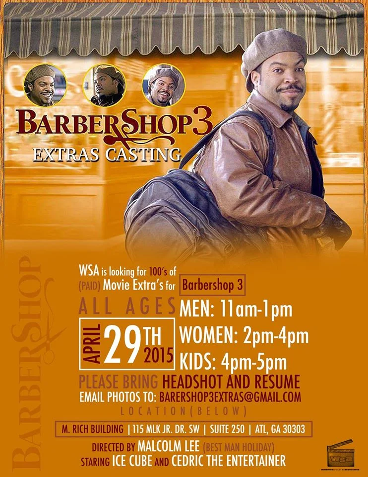 Barbershop is coming back for round three. A new “Barbershop” movie is now filming in the Atlanta area and will be holding an open casting call for extras and featured extras. The movies casting directors are seeking to fill many small roles in the film. They are looking for kids and adults who would be available to work as paid movie extras this spring / summer. The open call is scheduled for April 29th and there are different times for men, women and kids to come in. Casting directors are asking that those attending bring a headshot and resume (If they have one).