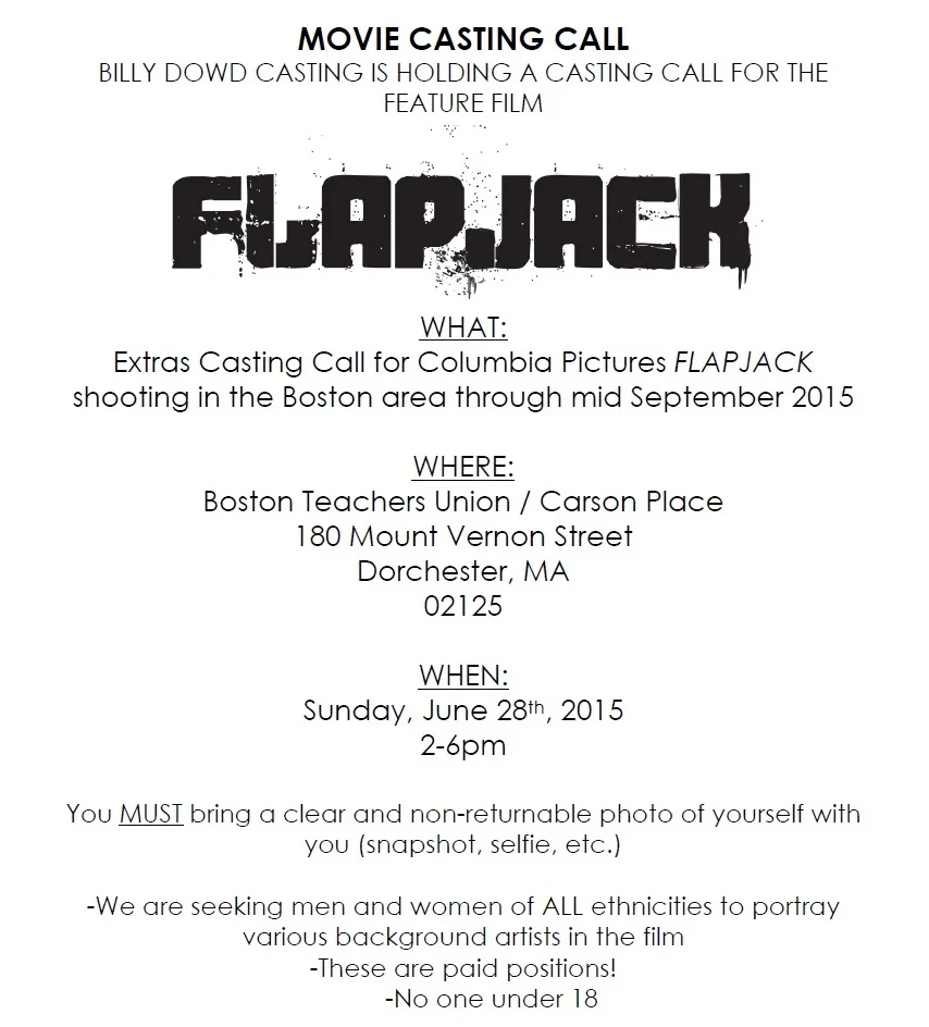 Most productions have 1 open call when they are starting in the area. Chances are this will be the only open call in Boston, but hey, you never know.