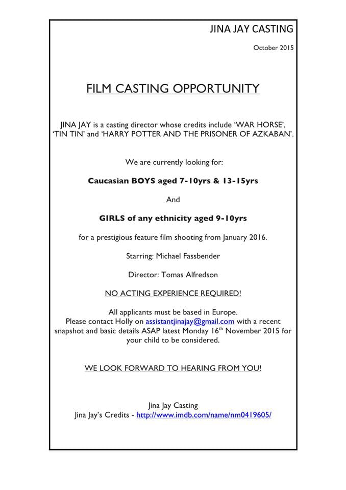 Jina Jay Casting has just released a UK casting call for UK child actors. The film’s casting directors are seeking Caucasian boys ages 7 to 10 and 9 to 15 as well as girls ages 9 to 10 of any ethnicity to fill principal roles in the production. All child actors applying MUST be UK based and must apply by November 16th in order to be considered for the roles. The movie will begin filming in the UK this coming January of 2016 and is expected to hit the movie theaters in 2017.
