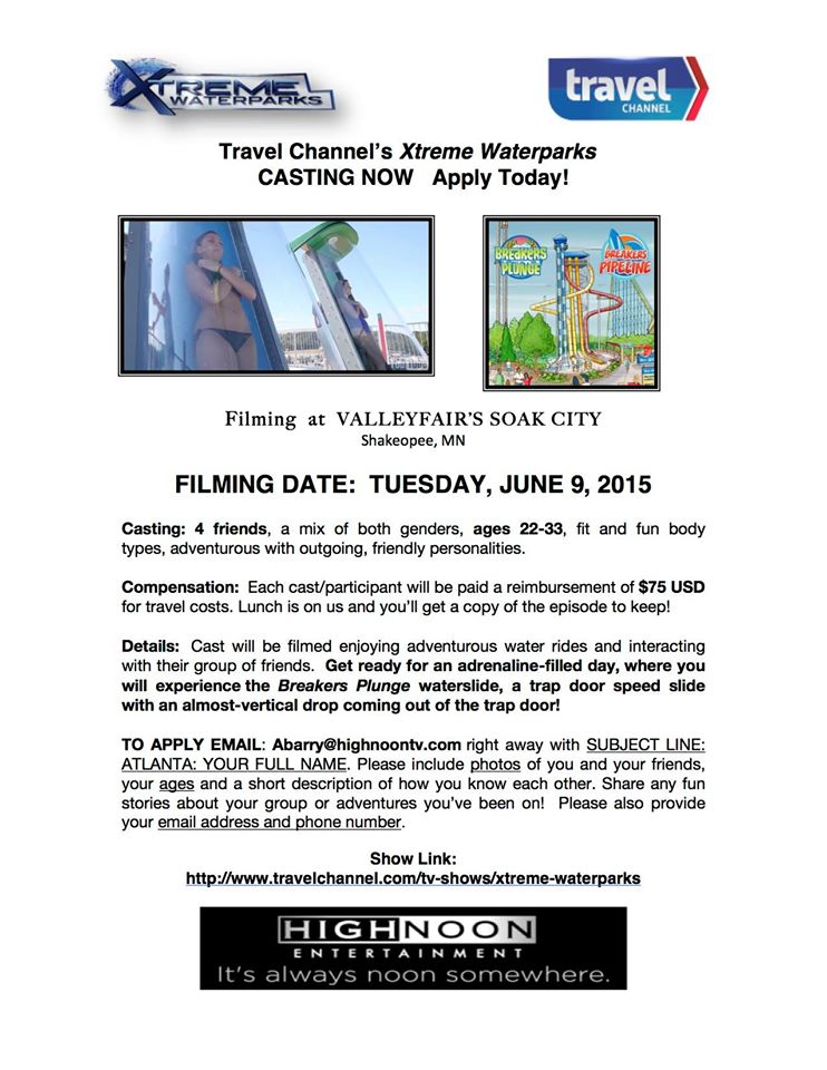 CASTING NOW 4 FRIENDS: Travel Channel’s Xtreme WaterParks is coming to Minnesota.
