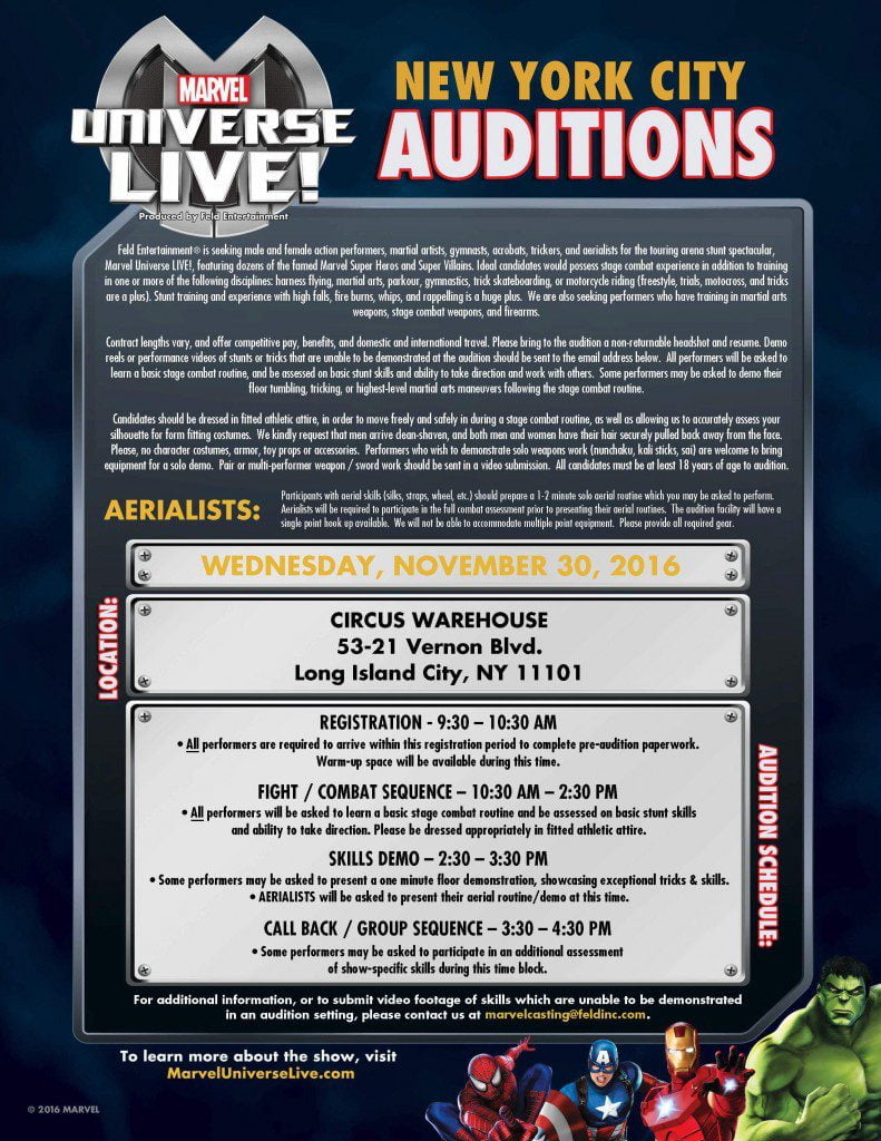This casting notice was posted by: Marvel Universe LIVE! National Tour