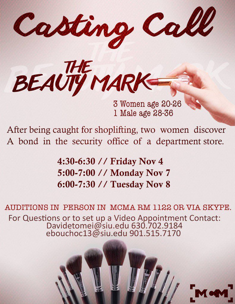 Movie Camera Movement has a film coming up called “The Beauty Mark,” a story about two young women who bond in a department store security office after being caught shoplifting. All information can be found on our flyer here, but if you have any questions, comments, or concerns please do not hesitate to reach out to me!