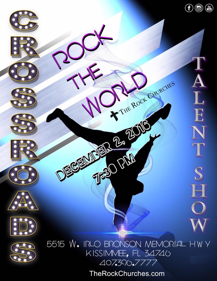 We are currently looking for acts to perform whether dancing or singing, etc. for Friday Dec 2nd, 2016 @ 730pm. It is free to participate and free to attend. Crossroads Talent Show is a community event held to display the amazing talent in Central Florida and beyond. Contestants compete in their category, win prizes and get to perform in front of a large audience.