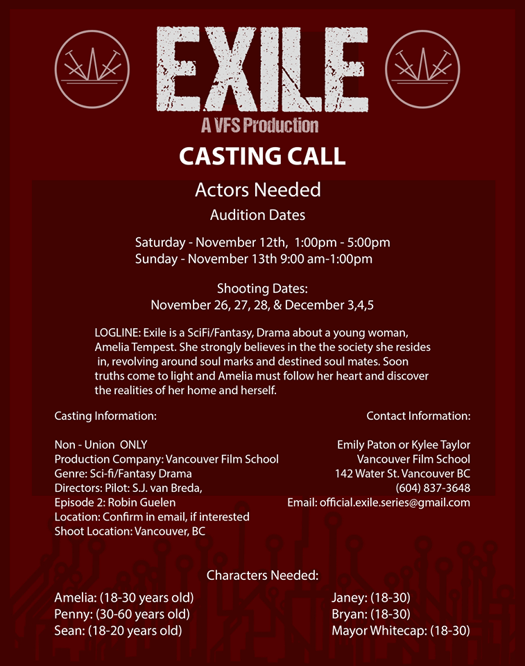 Hi All, This is Kylee Taylor, Producer on a new series, EXILE.