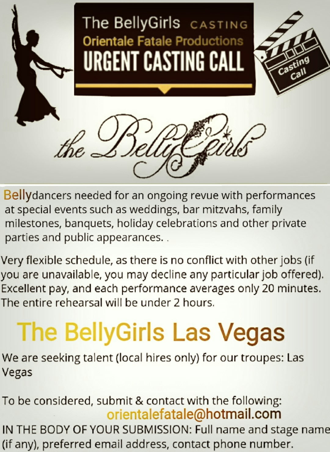 Female Dancers & Belly dancers needed for ongoing revue, special occasions (birthday, weddings…), private events, concerts and TV shows.
