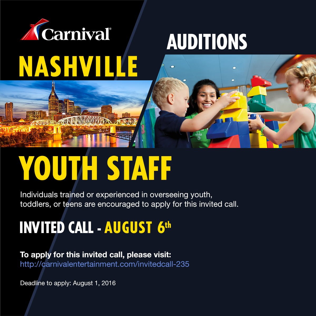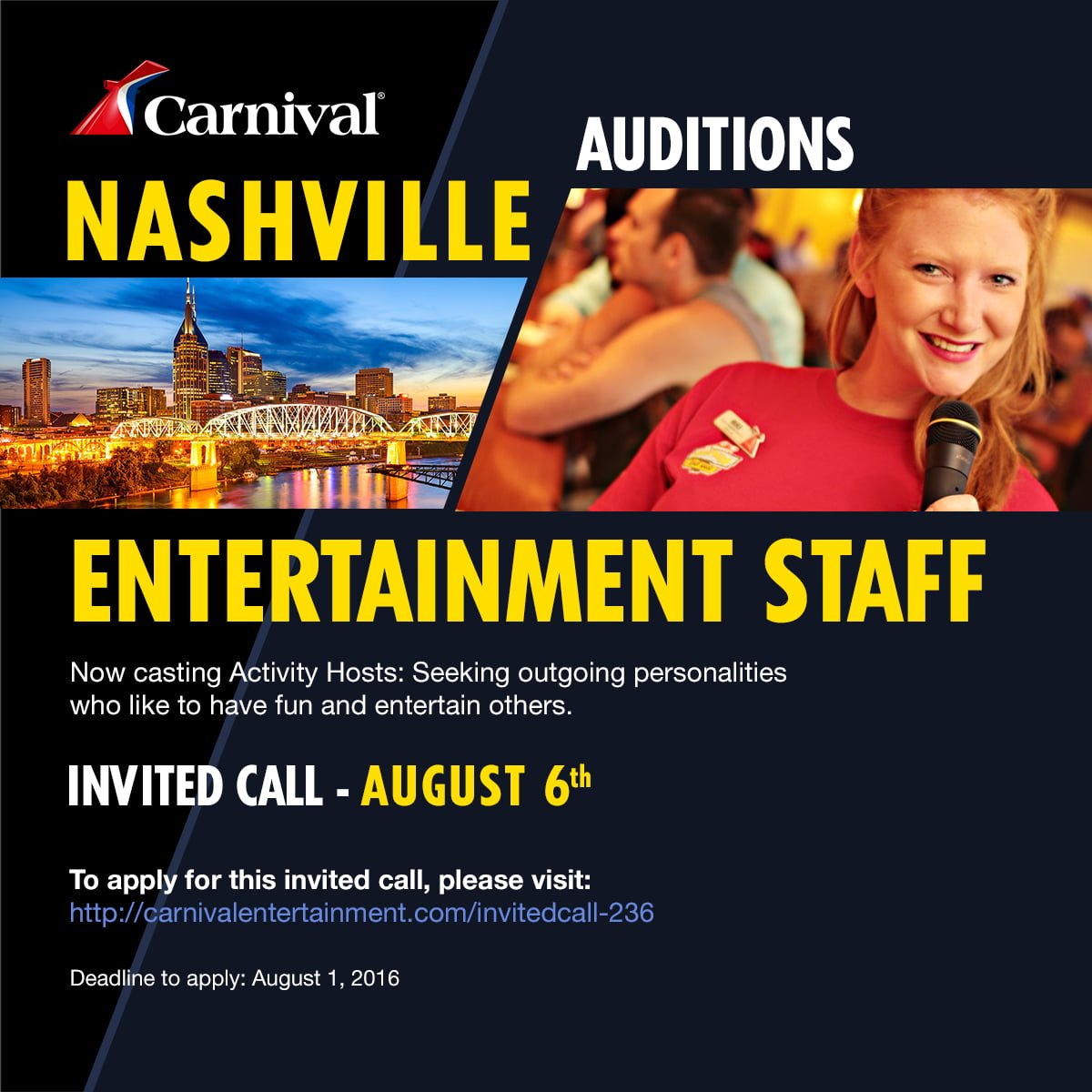 This casting notice was posted by: Carnival Cruise Line