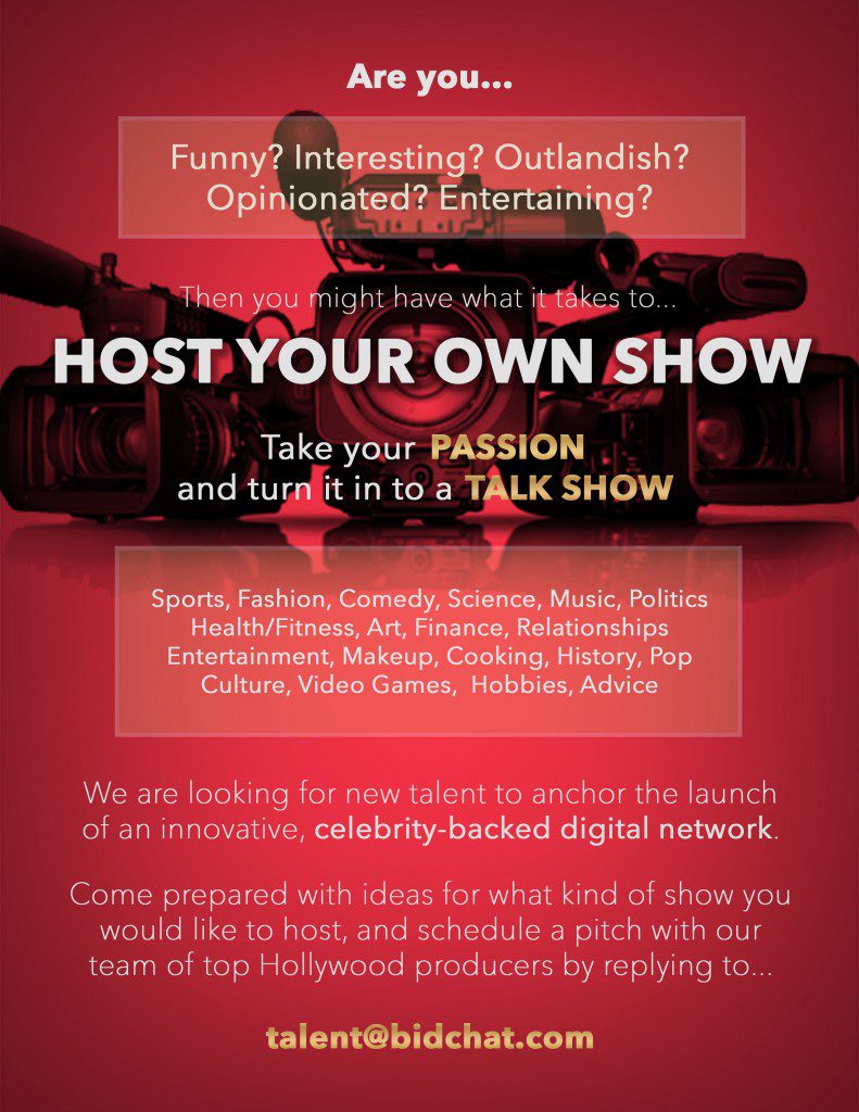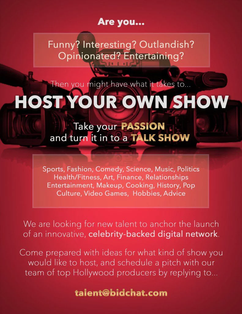 We are looking for new talent to anchor the launch of a new, celebrity-backed digital network.