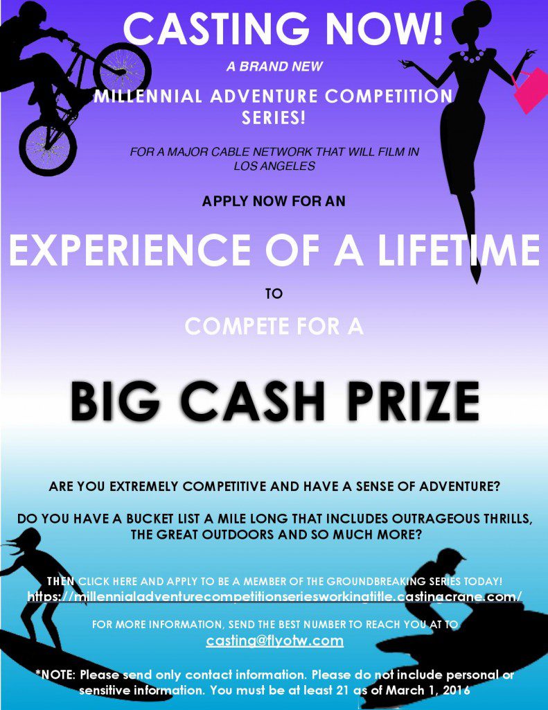 If you are FUN, LOUD, and a BIG PERSONALITY this is the show for you. All contestants on the show will be competing for BIG MONEY and will be a part of an experience of a lifetime! All submissions should include 3-4 pictures, your age, location, and short description of yourself.