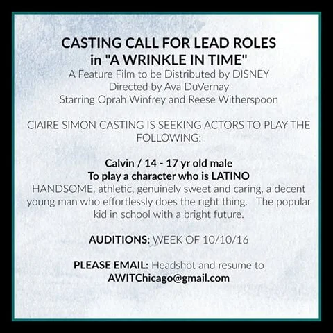 Disney’s upcoming retelling of “A Wrinkle in Time” is holding open auditions for teens in Chicago.