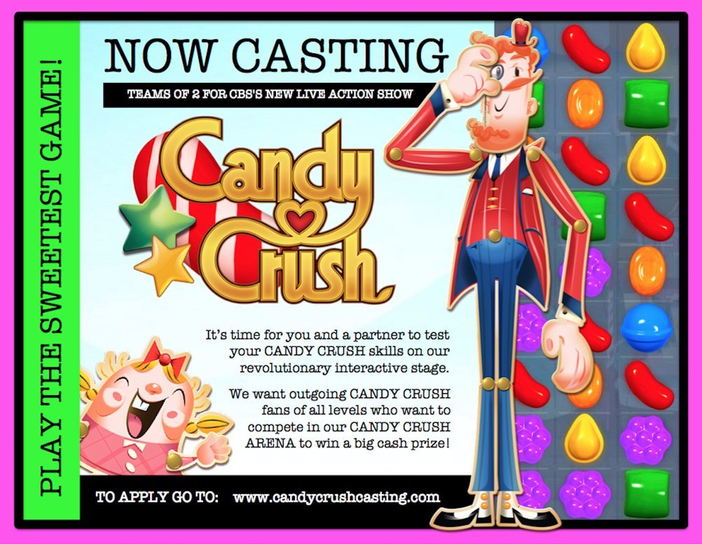 NOW CASTING NATIONWIDE: Teams of 2 for CBS’ New Live Action Show: CANDY CRUSH! Win a big cash prize.