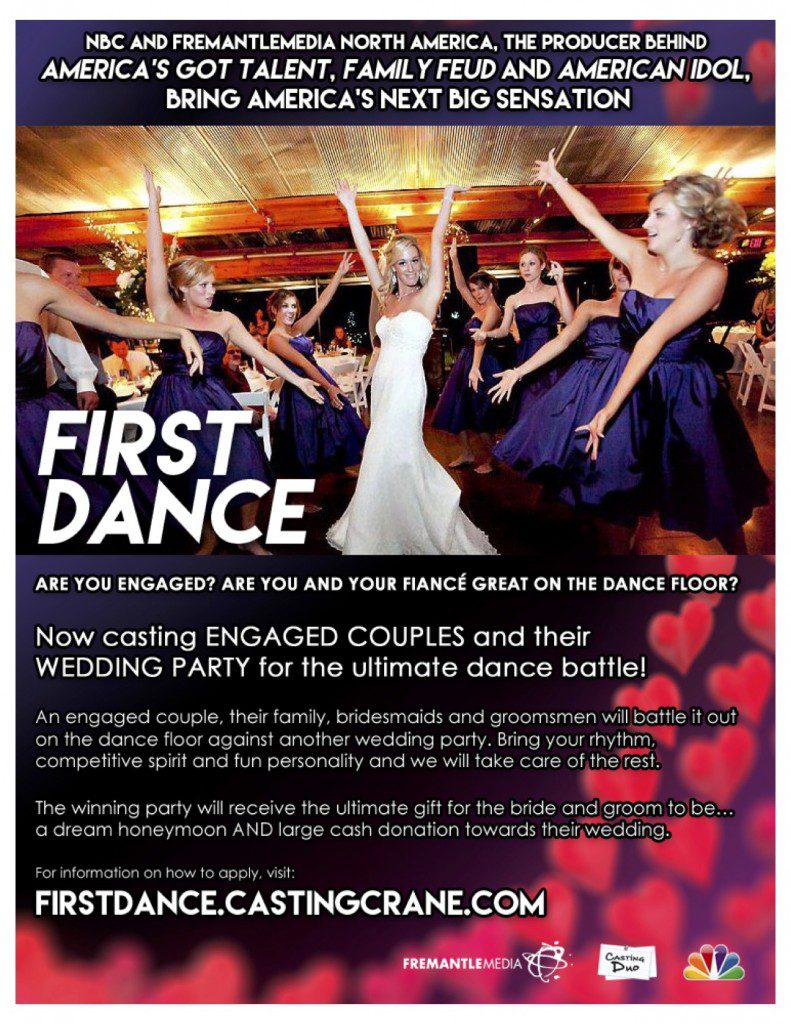 Now casting real ENGAGED COUPLES and their WEDDING PARTY for the ultimate dance battle! It’s Lip Sync Battle meets Dancing with the Stars!