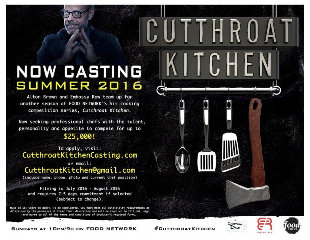 FOOD NETWORK NOW CASTING the new season of CUTTHROAT KITCHEN.