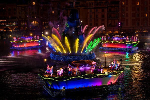 The show features fireworks, live actors, water effects, pyrotechnics, lasers, music, audio-animatronics, decorated boat floats, and mist screen projections. Fantasmic! centers on a voyage through Mickey Mouse’s imagination that culminates in a battle against the Disney Villains. Witness the forces of good and evil as they do battle in Mickey’s dream during this extravagant musical, pyrotechnic spectacular!