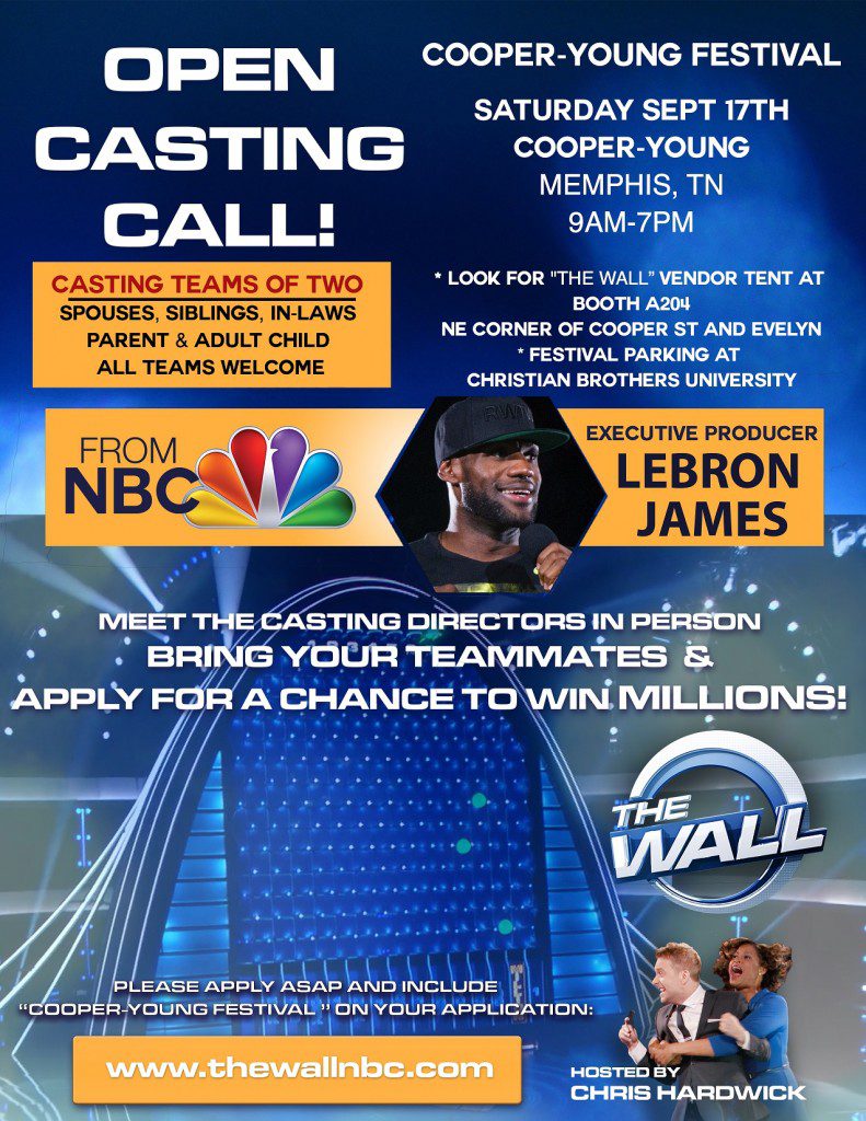 Open casting call on Saturday, September 17th at the Cooper Young Festival in Memphis, TN, from 9:00AM until 7:00PM.