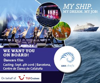 This casting notice was posted by: OPEN AUDITION Professional dancers for Mein Schiff Fleet Ensemble BARCELONA